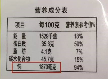 ◆查看营养成分表。比较简单的方法是看食物外包装上钠的NRV%值。如果NRV%超过30%,说明盐含量比较高,尽量还是少吃。少吃重口食物还有酸酸甜甜的食物,多注意看营养成分表,对钠的摄入做到心中有数。