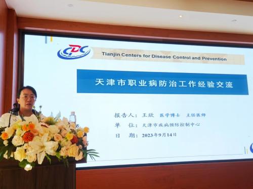 天津市疾控中心职业所王欣主任培训题目为《天津市职业病预防控制工作经验交流》,介绍了在健康中国战略背景下,职业卫生工作迎来的新机遇和新挑战,并分享了天津市职业病防治项目工作经验。