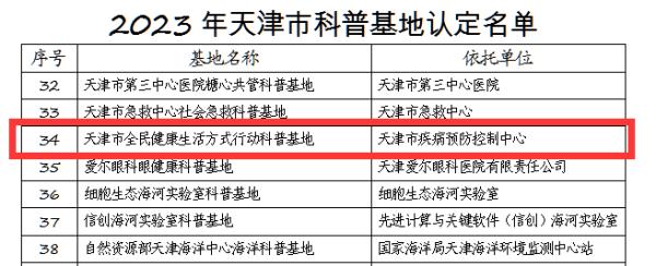 近日,经材料评审、集中答辩、实地勘察、部门评议等程序,天津市科技局公布了2023年天津市科普基地认定名单,全市共有58家单位被认定为市科普基地,我中心非传染性疾病预防控制所申报的天津市全民健康生活方式行动科普基地成功入选。