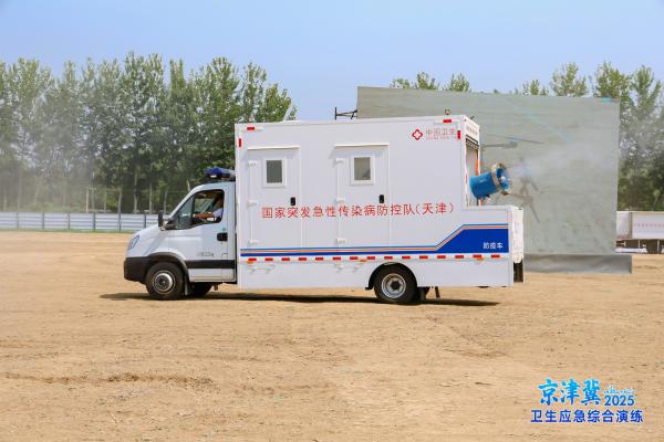 2025年5月28日由国家卫生健康委指导,京津冀三地卫生健康委联合主办的“2025年京津冀卫生应急综合演练”在北京市平谷区成功举行。国家突发急性传染病防控队(天津)闻令而动,迅速响应市卫生健康委和市疾控局的调派指令,派出了29人专业队伍和移动实验车、电源车、消杀车、物资储备车、运兵车、会议车等6辆专业特种车辆尽锐出征。全体队员在市疾控中心副主任苏旭领队的带领下,团结一致,以高度的责任感、使命感和专业素养圆满完成了全部演练科目的任务。